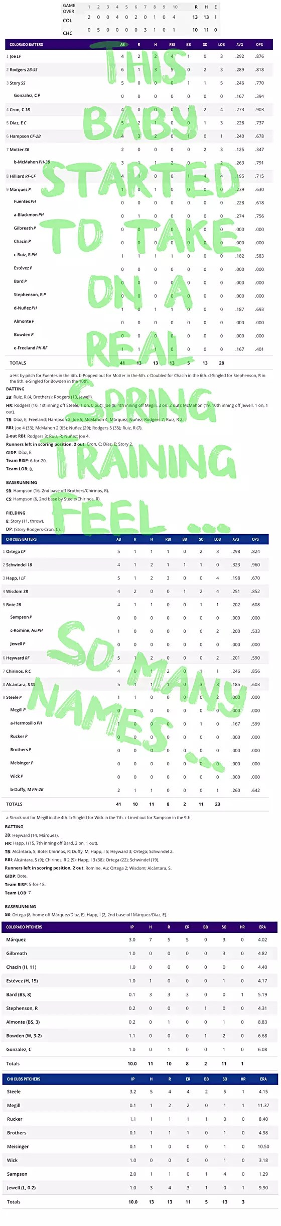 Even against the Rockies outside of Coors Field, the Cubs couldn’t pull off the sweep. Shrug.